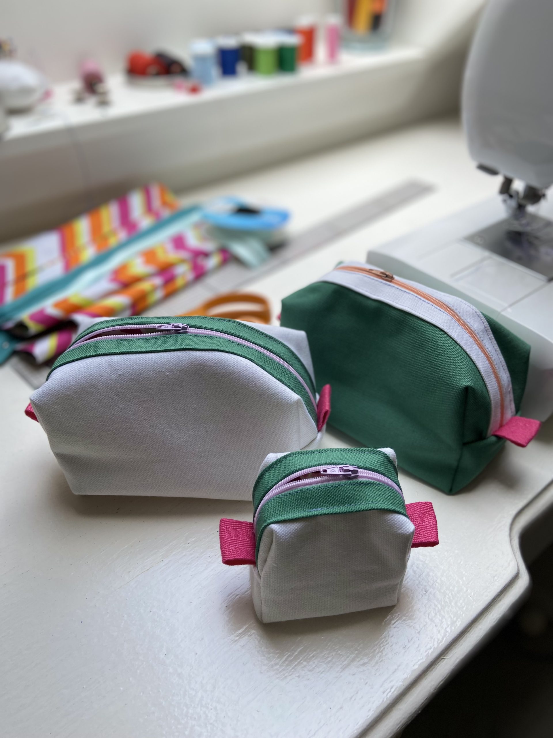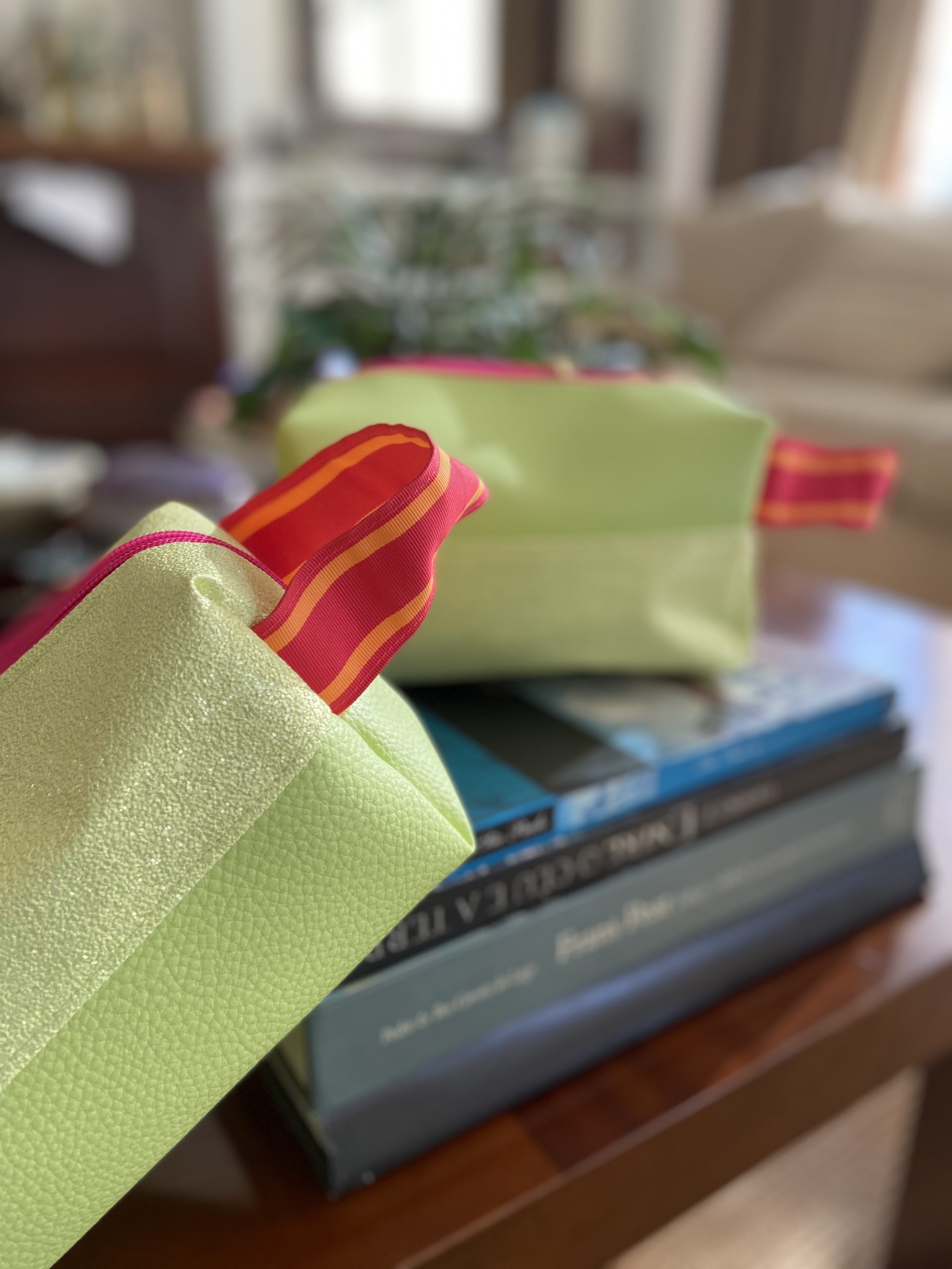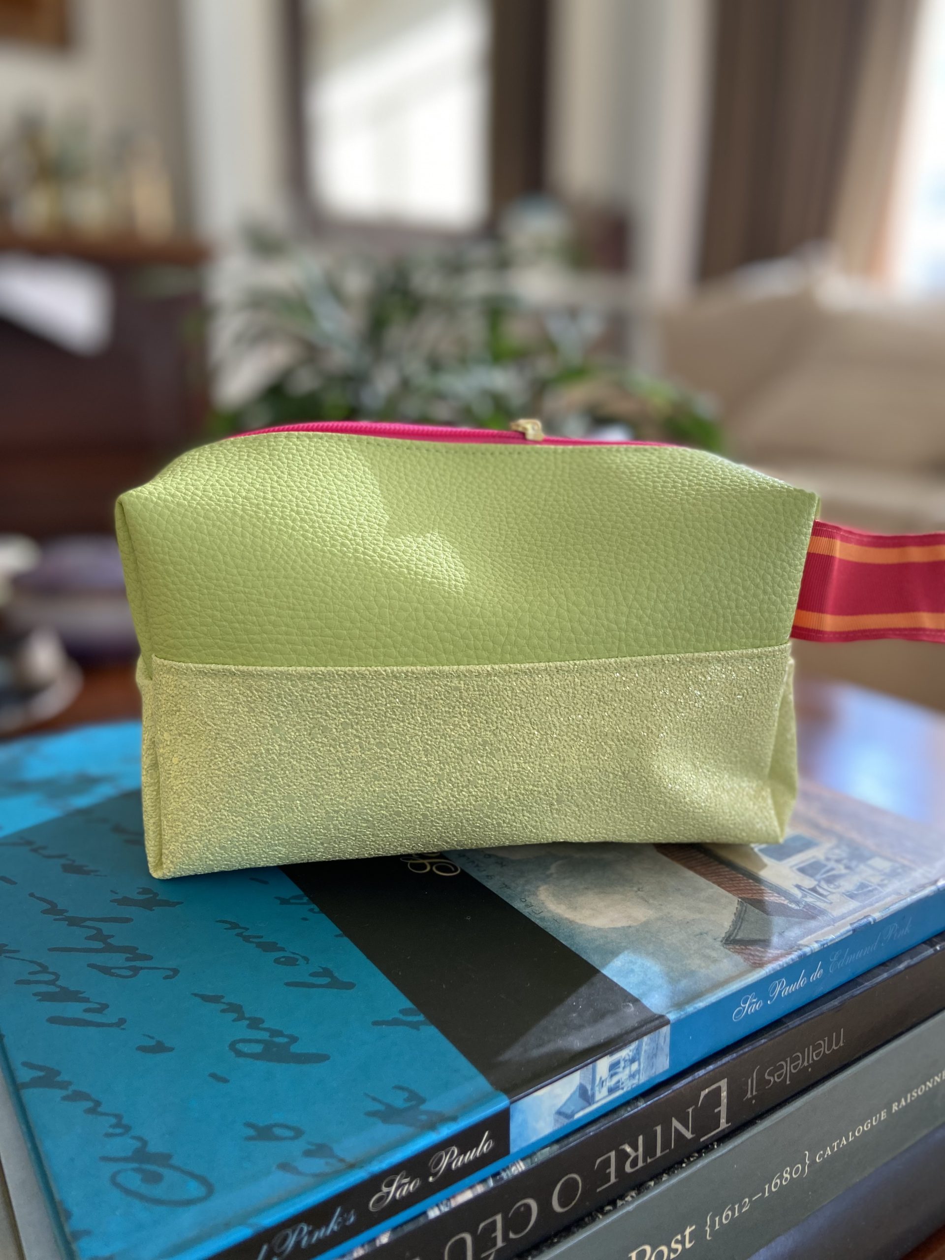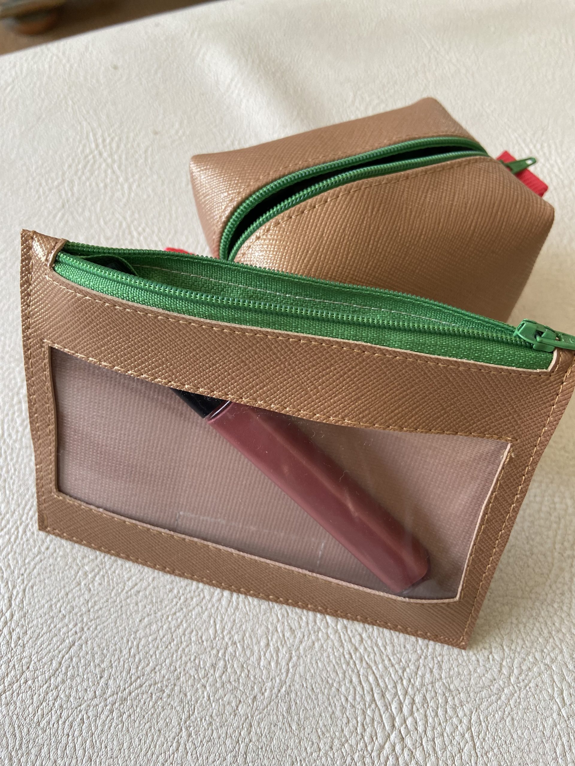 Necessaire branca e verde.
