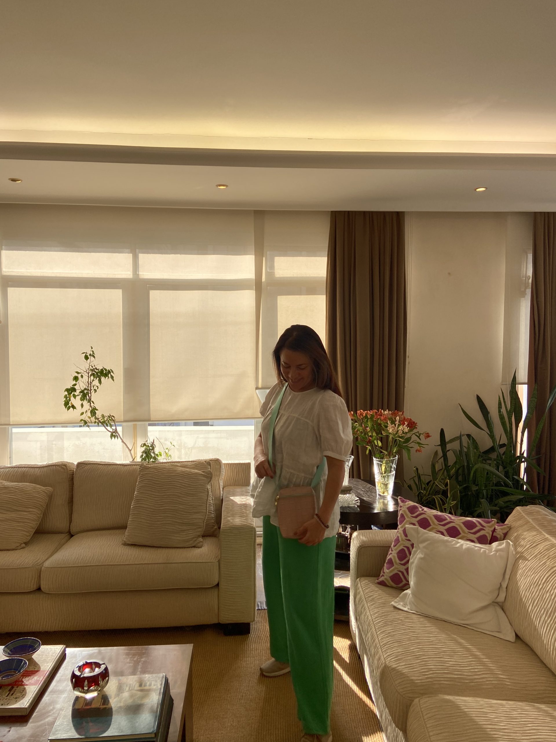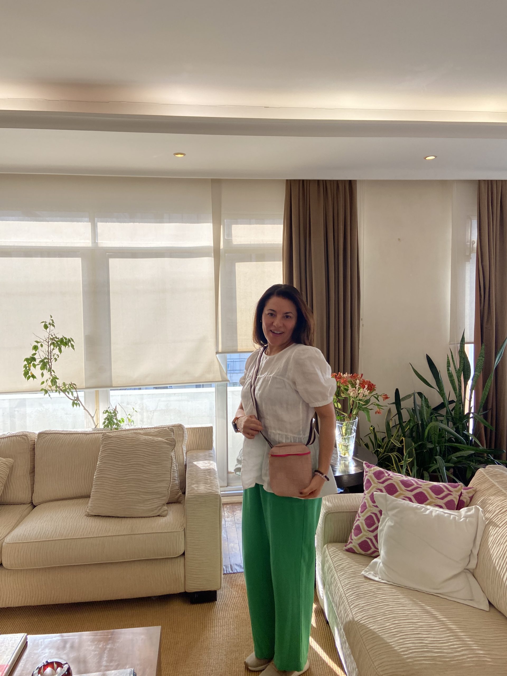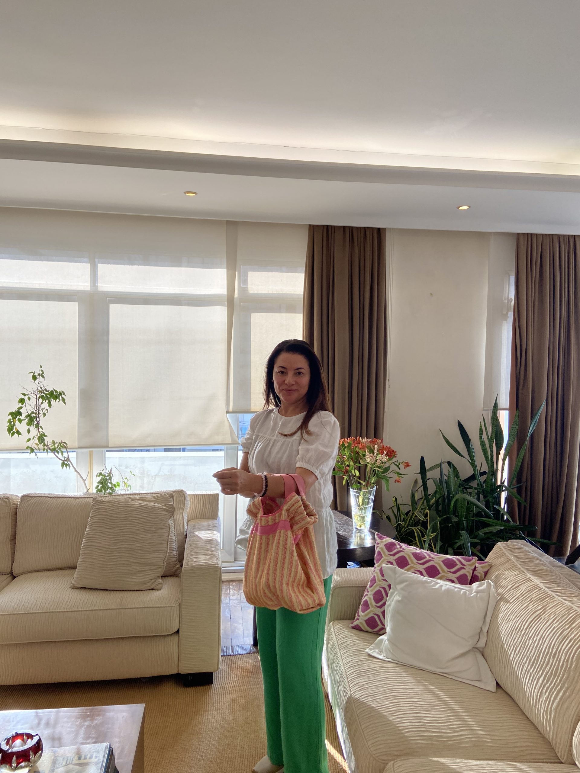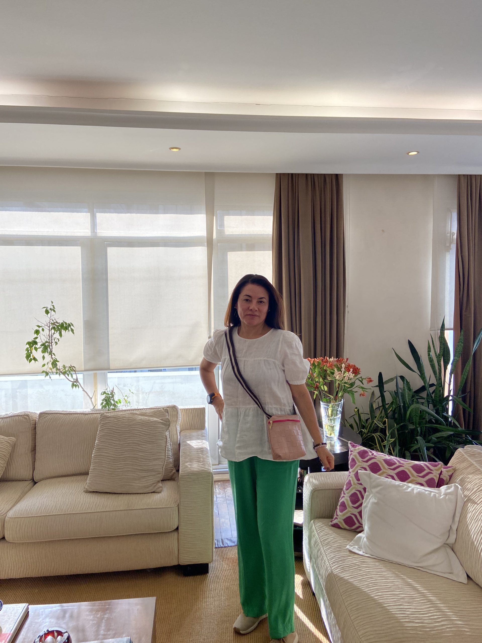 Bolsa transversal rosè e alça verde