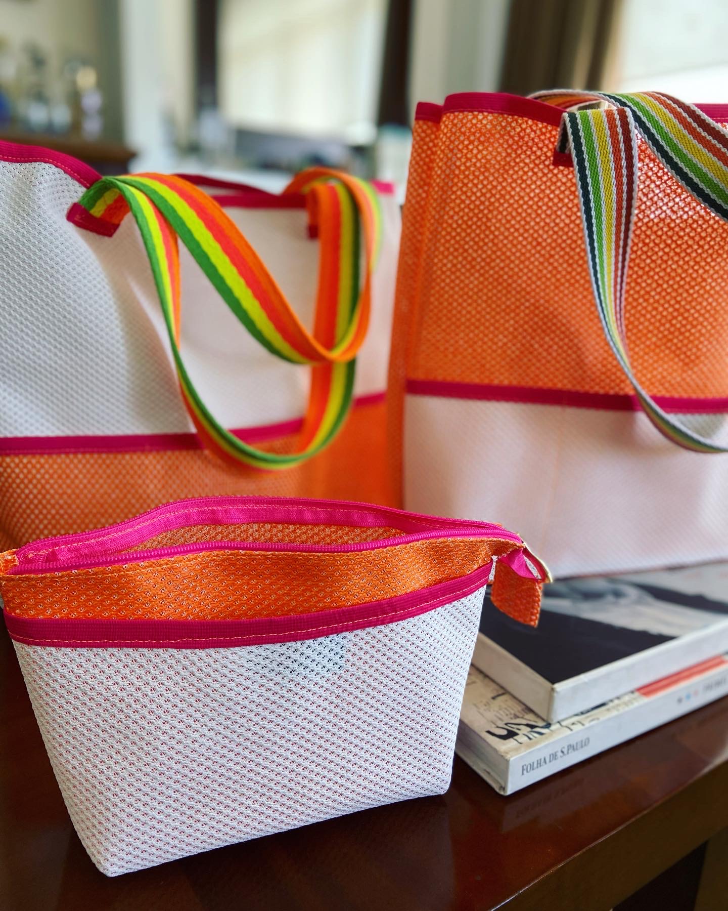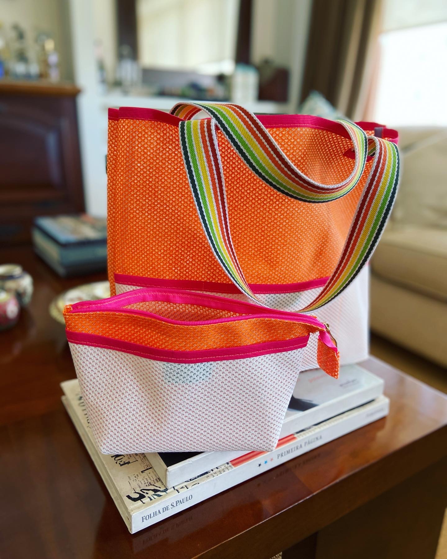 Bolsa e necessaire neon tela