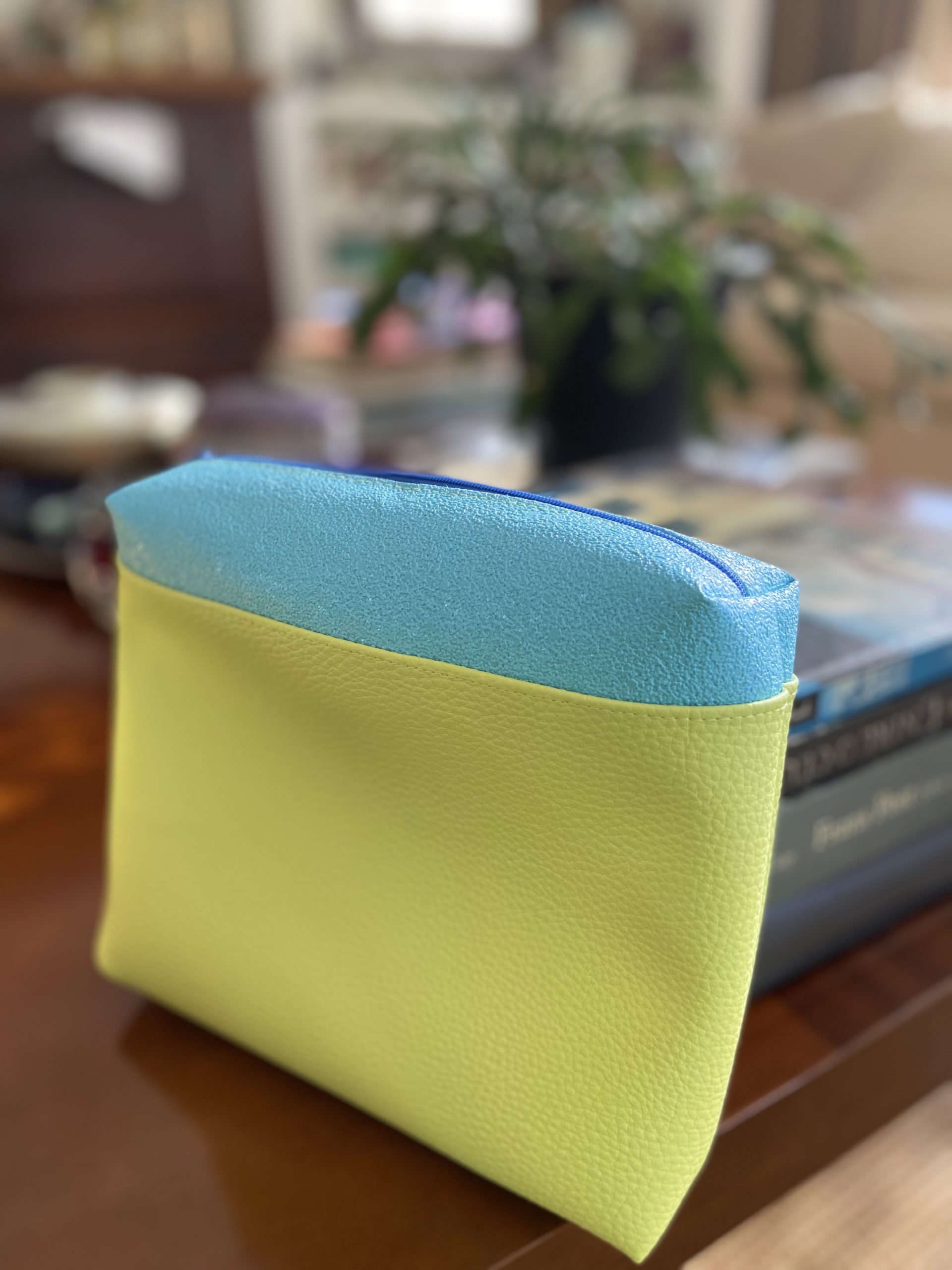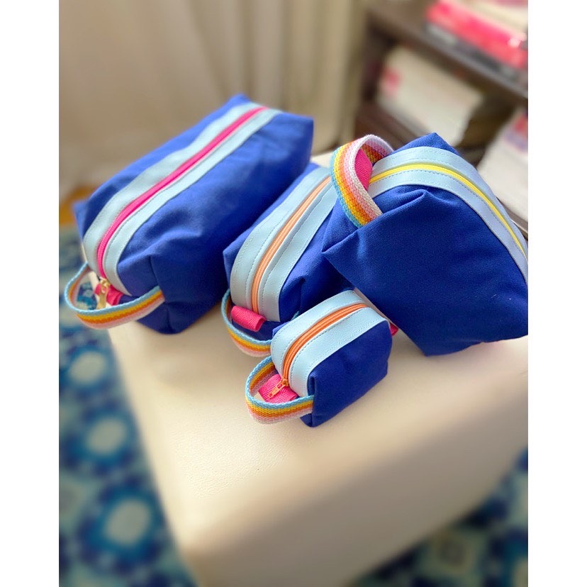 Necessaire amarela e azul brilho