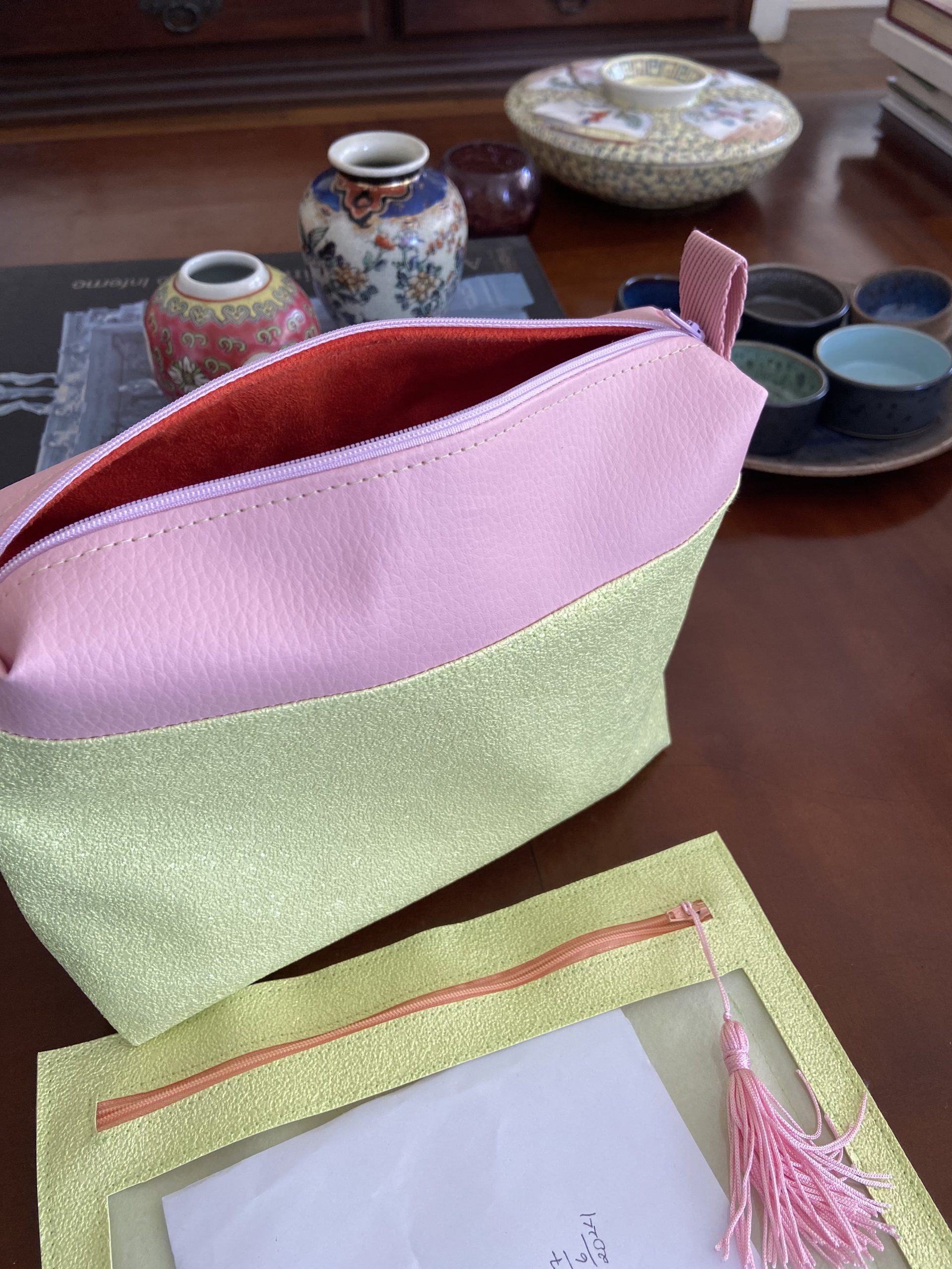 Conjunto necessaire verde.